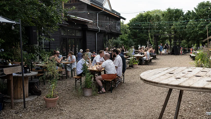 I köket skapas organiska rätter baserade på takterrassens egen odling medan sommelierna väljer ut de perfekta, naturliga viner till rätterna. De fyra kockarna har bakgrund i allt från landskapsarkitektur till Michelin-prydda restauranger som Noma och 108.