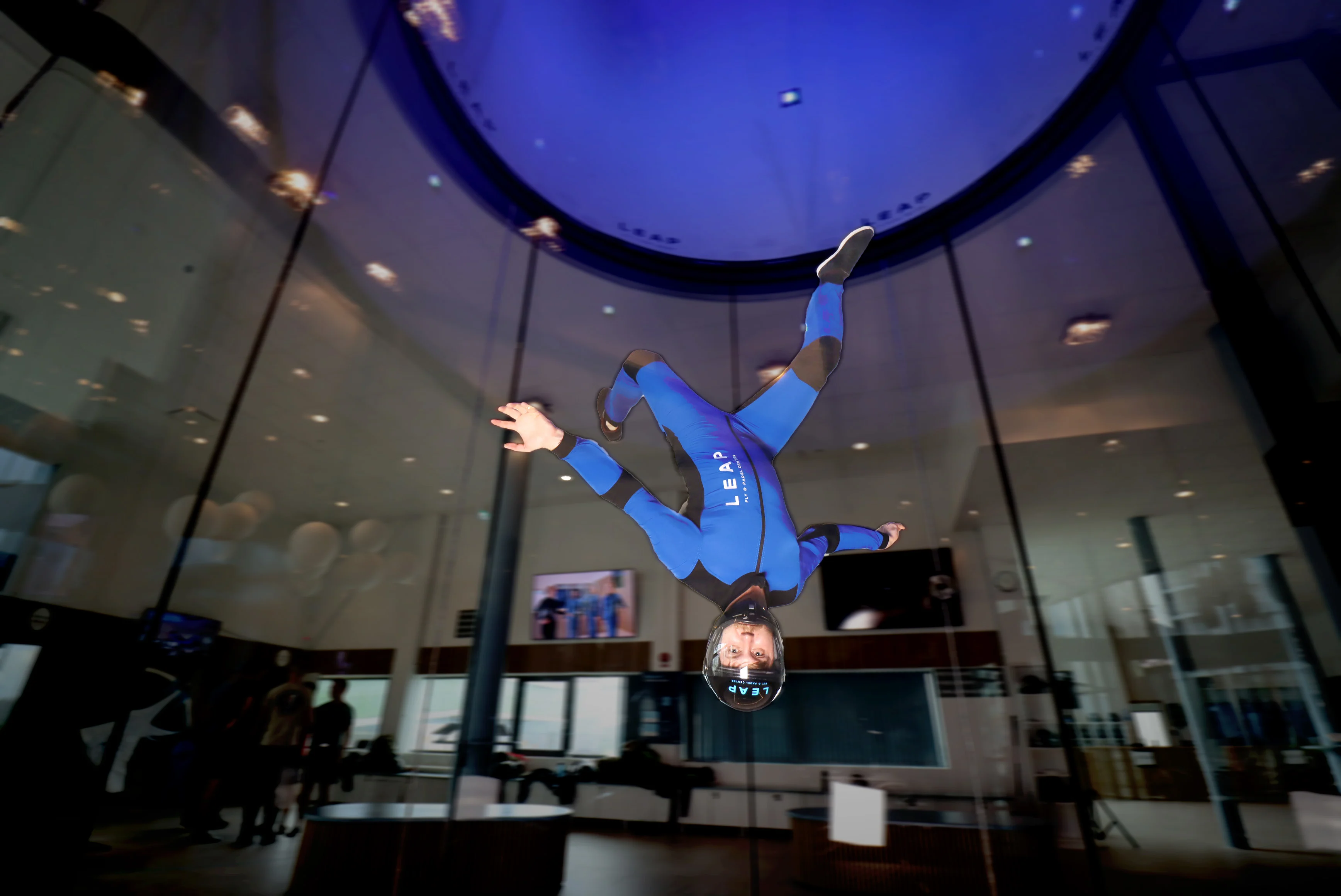I vindtunnellen prøver du at flyve i selskab med en erfaren instruktør, hvilket giver dig en helt unik flyveoplevelse. Alt det nødvendige udstyr, en sikkerhedsgennemgang med instruktøren og forsikring er inkluderet i pakken.
