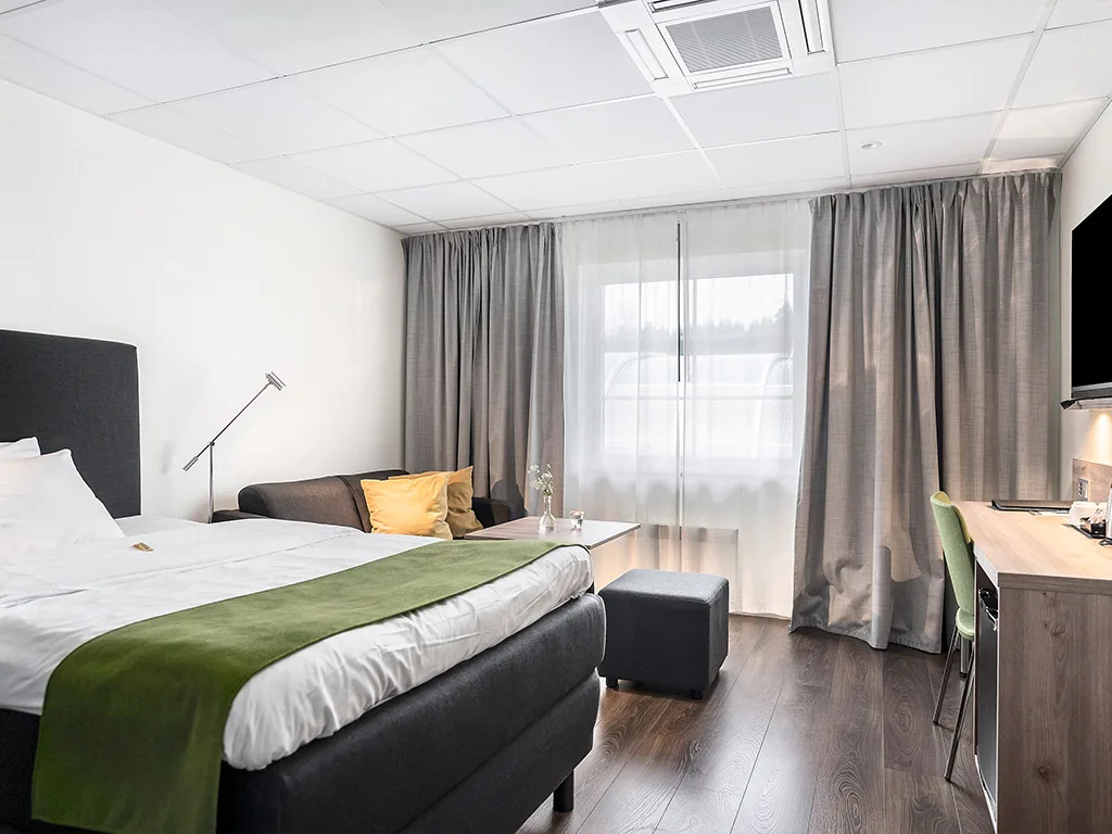 Bo i dejlige omgivelser på det skønne Hotel Vrigstad i Småland. Her bor du tæt på natur og skov, og på hotellet er der fokus på hyggelige og personlige hotelværelser, så der der god plads til afslapning efter en lang da på eventyr.