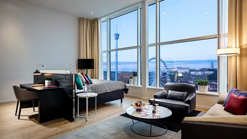 Hotellets 1200 værelser er personlige og stilfulde, og både egnet til familier og til par. Gothia Towers huser ikke mindre ned 5 restauranter, og på 23. etage kan du nyde udsigten over byen fra stedets sky-bar.