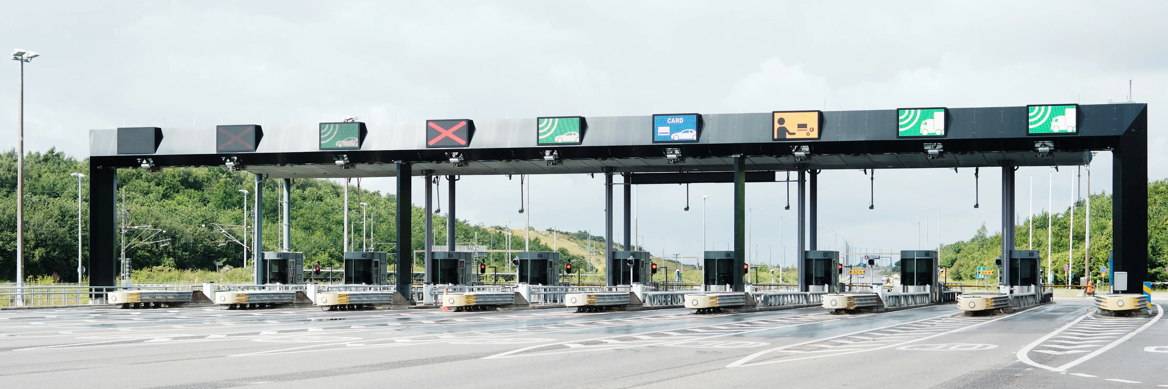 Disse baner er udstyret med skærme og kortterminaler, og ligesom ved kontantbetaling læser systemet først dit registreringsnummer for at vælge det rigtige sprog og måler derefter længden på dit køretøj for at beregne prisen. Du betaler med kortet og venter på, at bommen åbner.