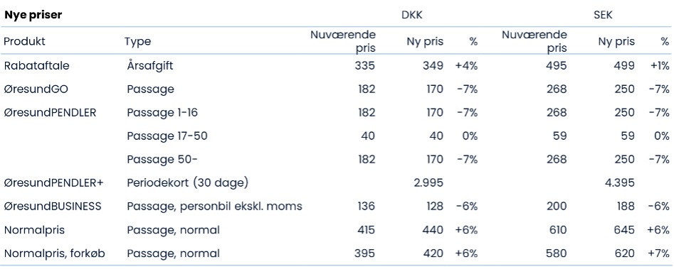 - Alle enkeltture over Øresundsbron bliver billigere for alle kunder med en rabataftale allerede efter 1. rejse tur/retur. Her er priser for personbiler: